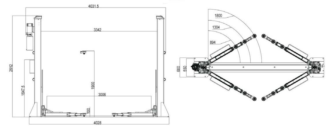 - Asymetrická zvedací ramena s tří stupňovými krátkými a dlouhými rameny pro velký rozsah od malých vozidel až po velké dodávky a vestavěnou ochranou pro nohy při spouštění